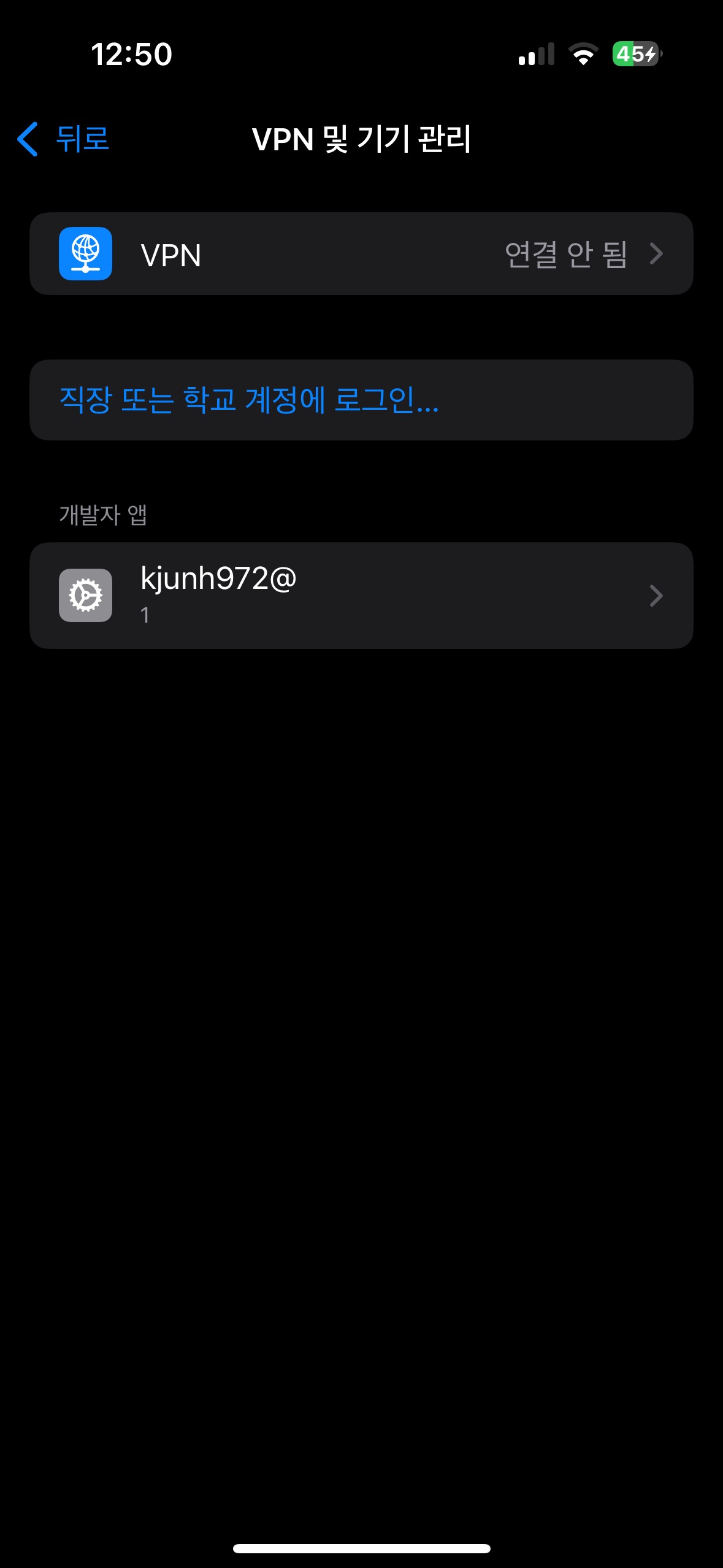 설정 - 일반 - VPN 및 기기 관리에 들어가면 위에 이미지처럼 '신뢰할 수 없음'이 표시됩니다.